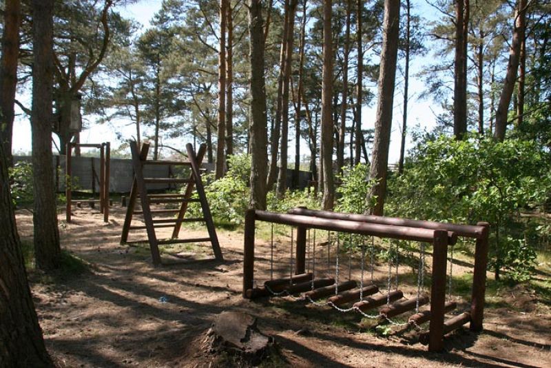 Drugi plac zabaw (małpi gaj) to jeden wielki tor przeszkód, w którym są urządzenia do wspinaczki, ruchome pomosty, drabinki, kładki, przeprawy po palach.